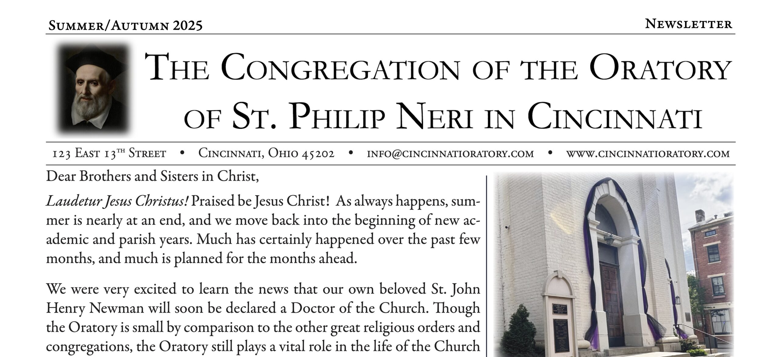 The Oratory’s latest newsletter has been posted to our Newsletter webpage. Please be sure to check it out!